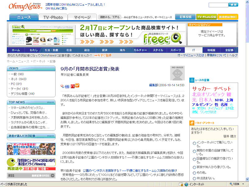 韓国での成功を引っさげ、知名度の高い鳥越俊太郎氏を編集長に迎えたオーマイニュース。創刊当日に登録市民記者数は1000人を突破、既存マスコミの注目度は高く、出資者であるソフトバンクの孫正義氏も自ら投稿するなど、華々しい幕開けとなった。