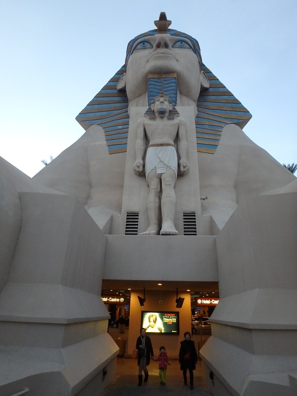 個性的なホテルが多いラスベガスにあって、ひときわ目立つ外観といえばここ、ピラミッド型のルクソールです。頂点からレーザービームが発射されている様子は、空港からも見ることができるほどです。