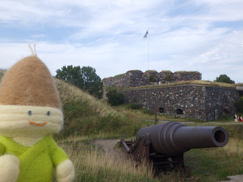 景色がぐっと広がって、星型に組まれた城壁、海に向かって並んでいる砲台、そしてどこまでも広がる水平線を一望。スオメンリンナ島が要塞島であることを実感できる。なんとなくジブリ映画に出てきそうな雰囲気。