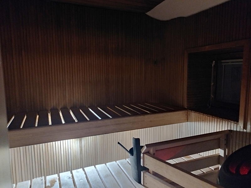 夜、ヘルシンキ市内へ戻って夕食後、ホテルのサウナへ行ってみる。日本のホテルにたいてい大浴場があるように、フィンランドのホテルには宿泊者用のサウナ設備がある。利用はしなかったがロバニエミのホテルにもサウナがあった。
