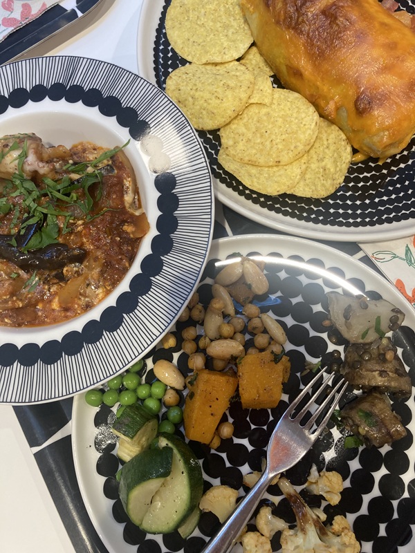 お値段15.20ユーロのランチビュッフェ。物価の高いフィンランドにあって、昼食はビュッフェスタイルのところが多いのが、食べ盛り連れには嬉しいところ。もちろん食器はマリメッコ。
