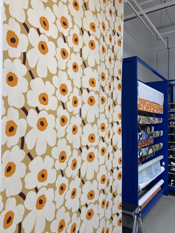 まずは本社に併設されている店舗。衣服、鞄、アクセサリー、食器、小物、布地、などなど、マリメッコ製品がずらりと並んで販売されているのだが、驚いたことに客の7割が日本人…。