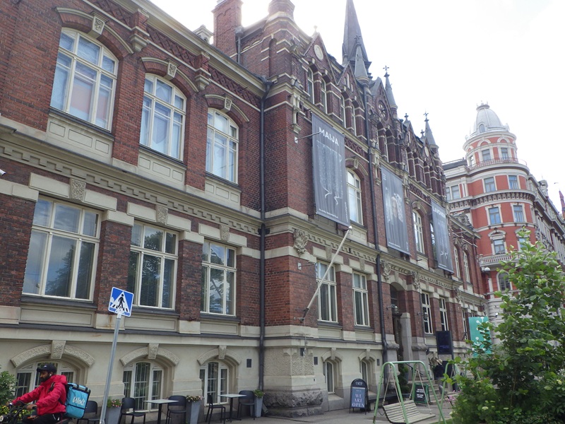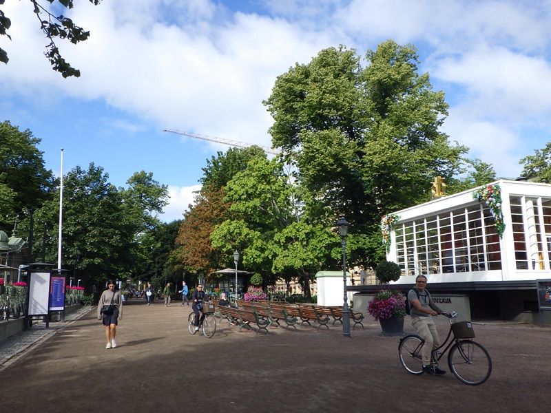 続いて中心部のエスプラナーディ公園。東西に延びている都市公園で、雰囲気は札幌の大通公園に似ている。周辺には飲食店や商業施設が並び、さすがデザインの国らしく美術作品がいくつか展示されていた。