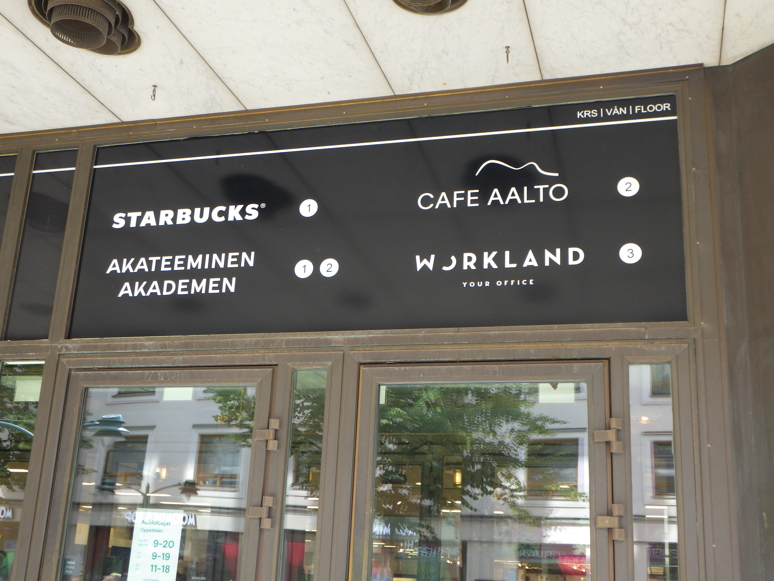 ヒエタラハティのフリーマーケットを訪れた後、再びエスプラナーディ公園へ戻ってアカデミア書店へ。2階にアアルトの名を冠したカフェがある。