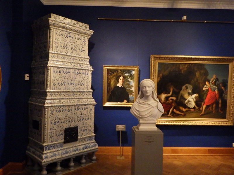 当時の絵画や彫刻、家具、食器などが展示されている。各部屋に置かれたタイル製の暖炉、青色の装飾が鮮やかであるのとあわせて、厳しい冬の寒さを感じさせる。