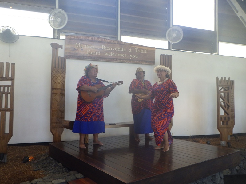入国審査の手前で早速タヒチアンミュージックの歓迎が。今回はベテランの演奏&ダンスだったが、若い演者のこともあるらしい。国を挙げて観光客をもてなそうという姿勢が感じられる。