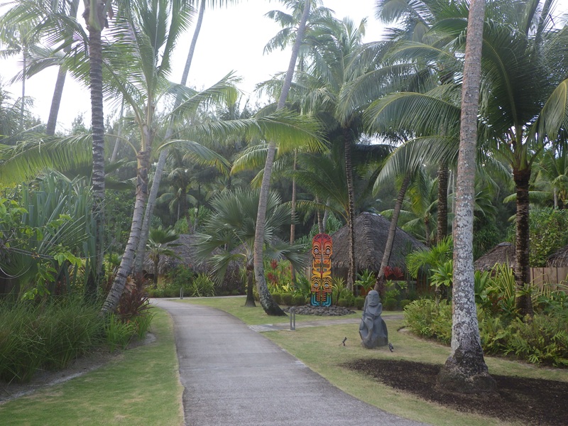 緑豊かな散歩道、あちこちにタヒチの神々(?)の像。タヒチの言葉ではティキというらしい。なぜかスパの建物の前に来るとブッダが鎮座していたのは愛嬌か。