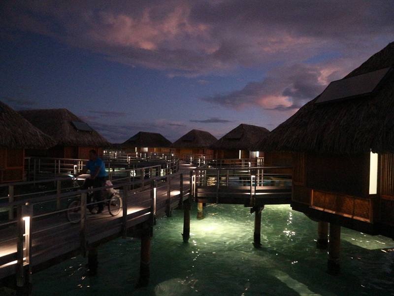 初日の宿泊は空港から近く、ボートで10分ほどのル・ボラボラ・パールビーチリゾート。ボラボラの本島から見て北西のモツ(小島)に立地し、ラグーン越しにオテマヌ山が見える。