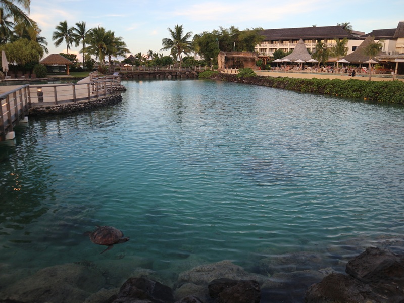 宿泊はインターコンチネンタル・タヒチ・リゾート。タヒチ島にも水上バンガローはあるけれど、ボラボラ島に比べると数は少ない。通常のホテルタイプの部屋がメインだけど、眺めは充分に素晴らしい。